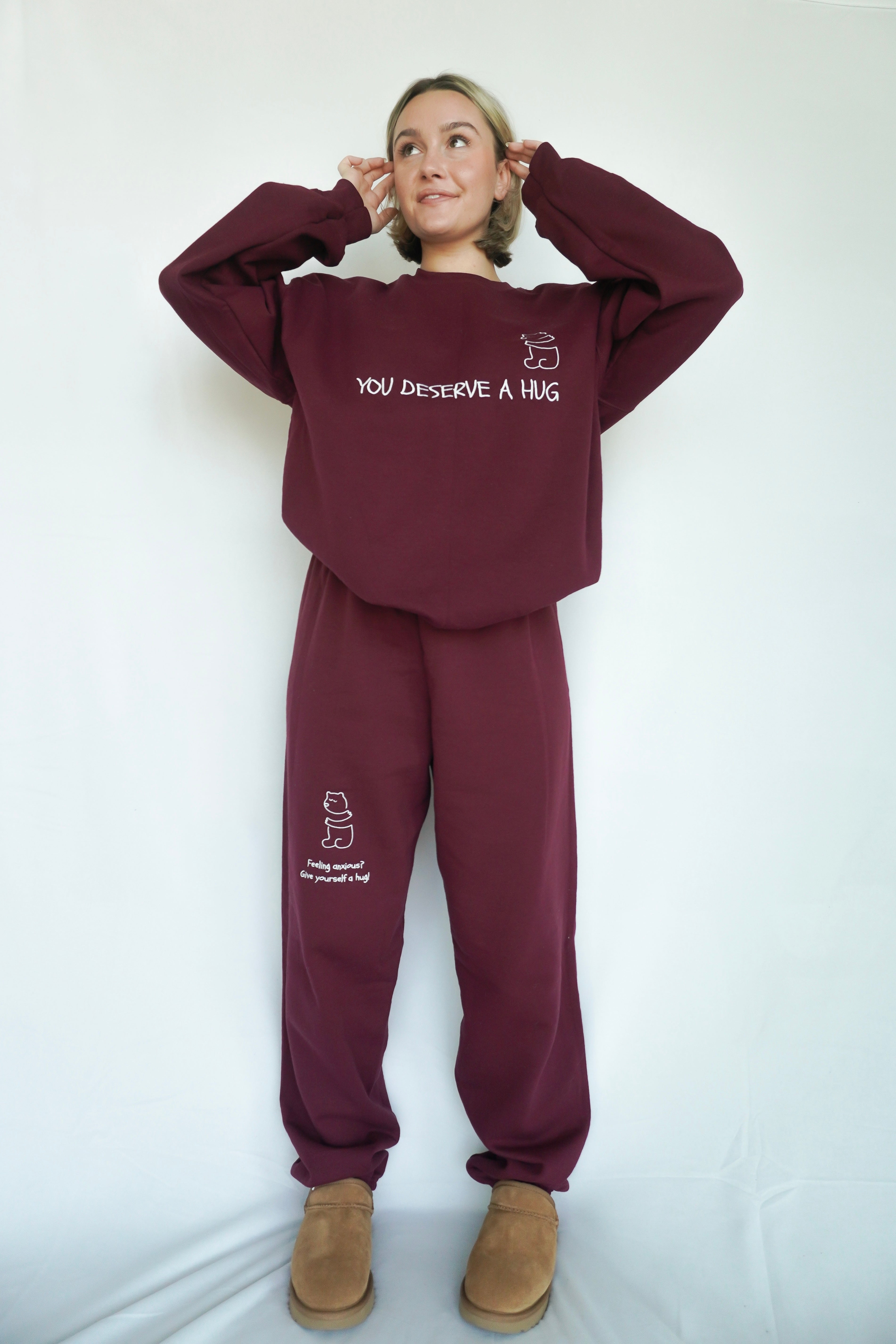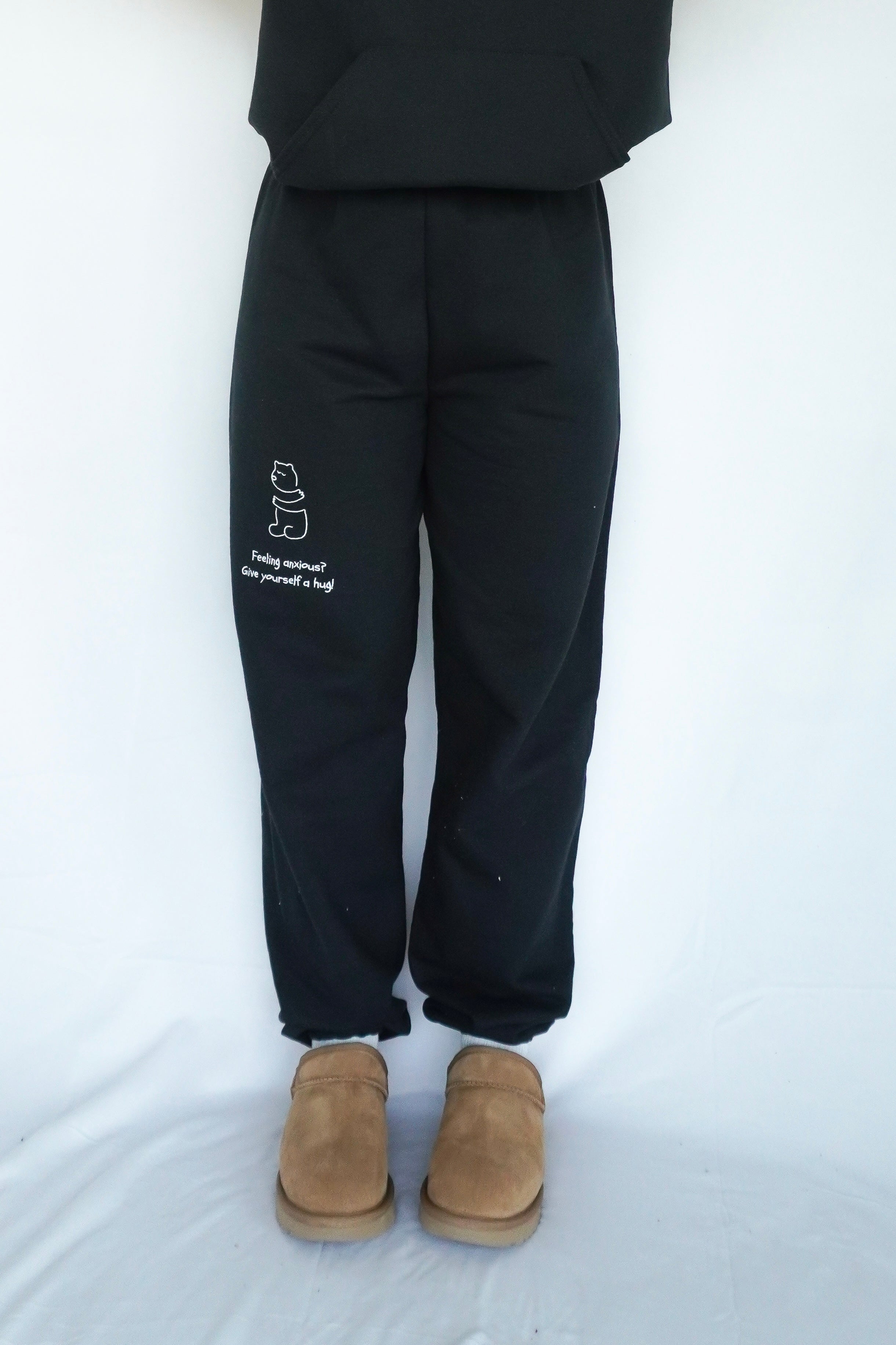 Our Origins sweatpants with the Feeling Anxious? You Deserve a Hug design