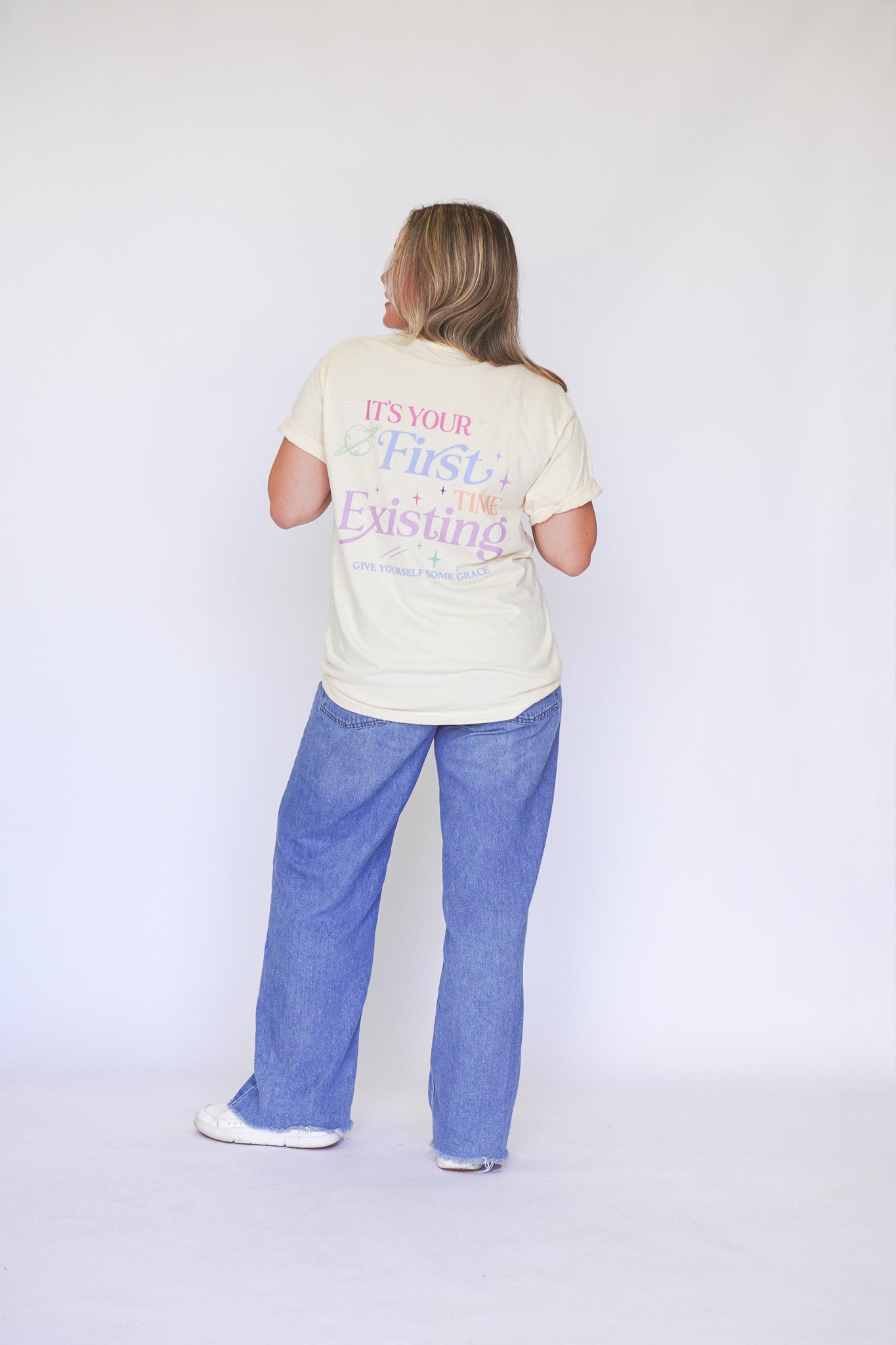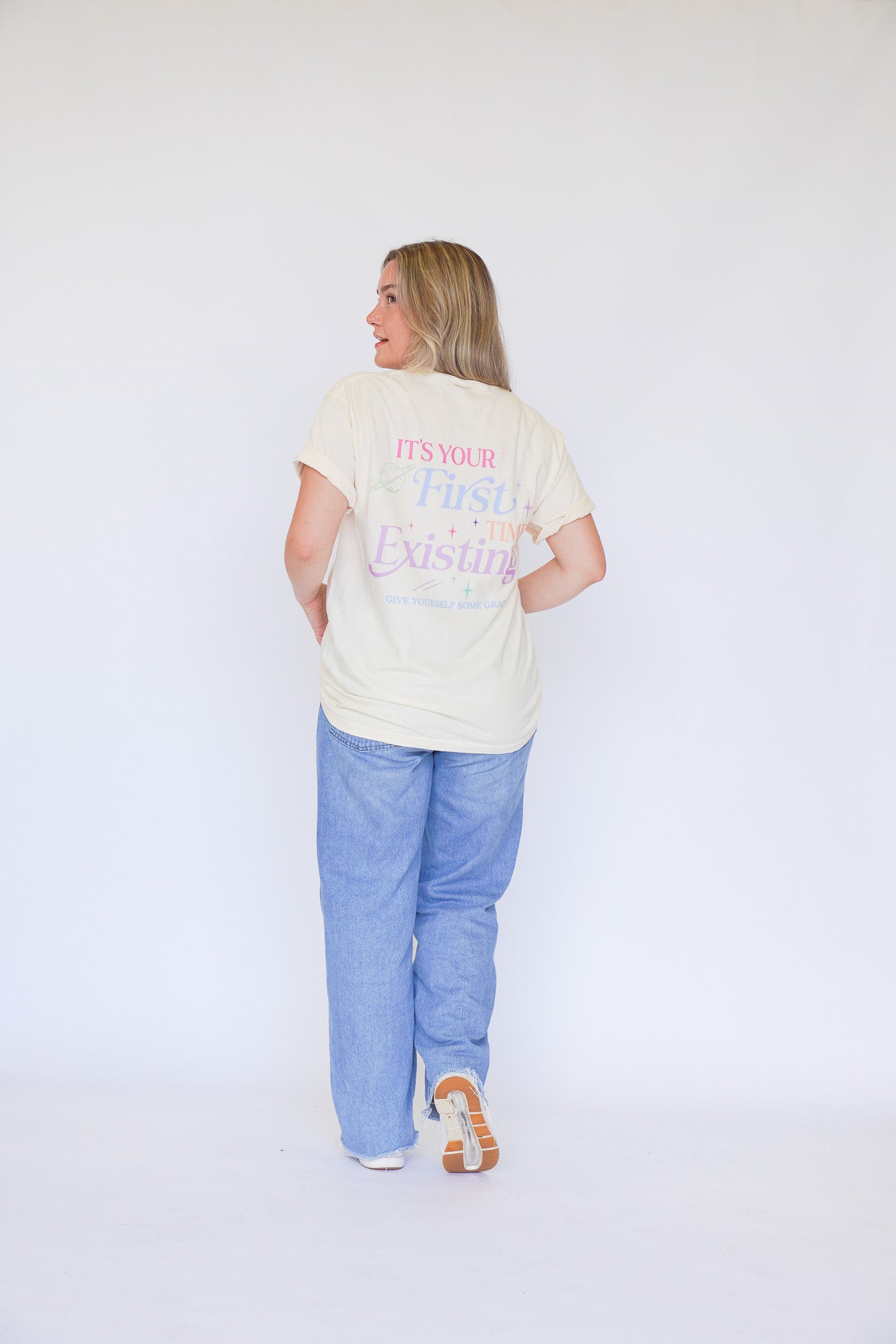 Our Origins tee featuring the IT'S YOUR First Time Existing design.