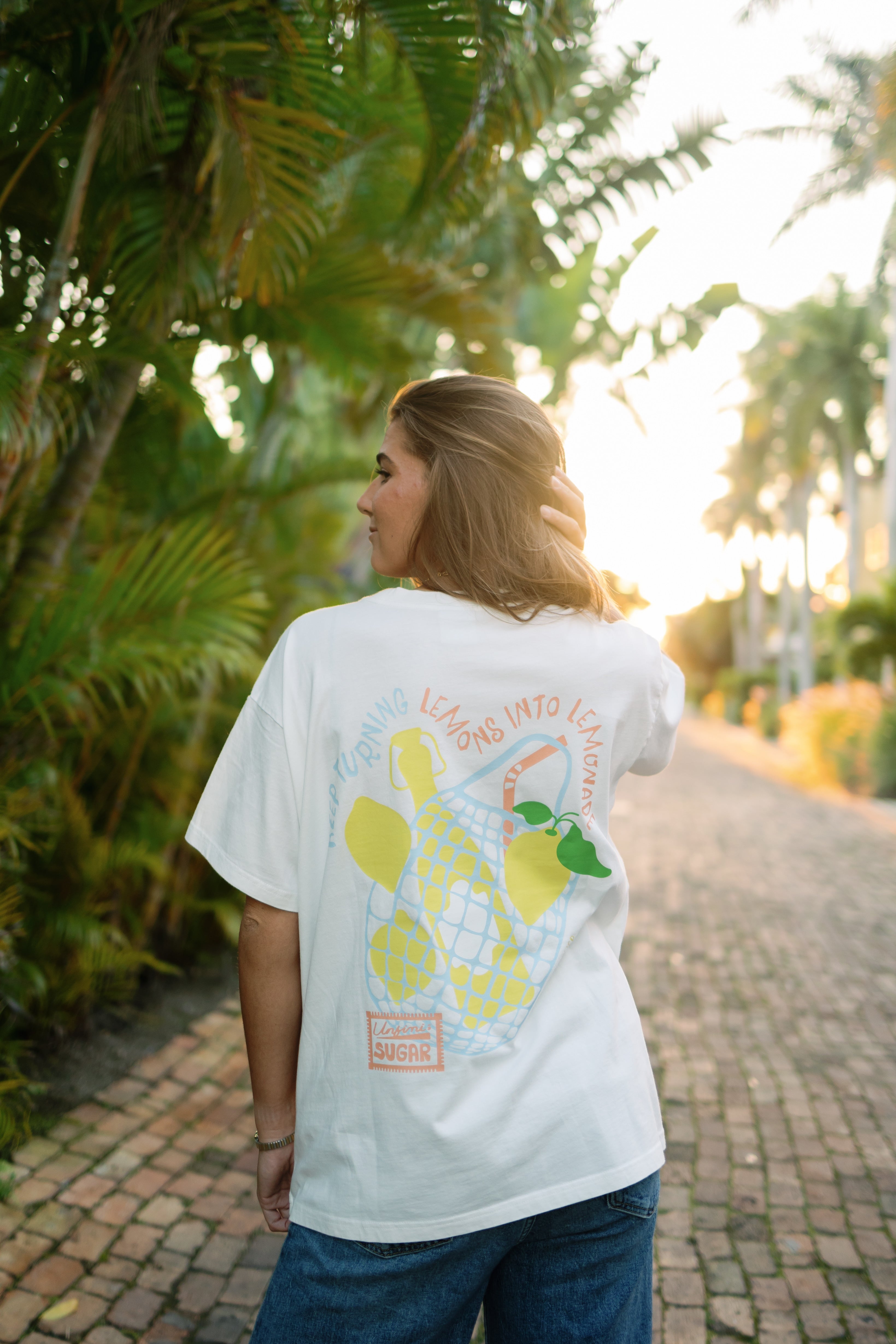 Our signature Mariposa oversized tee with the Lemons to Lemonade design