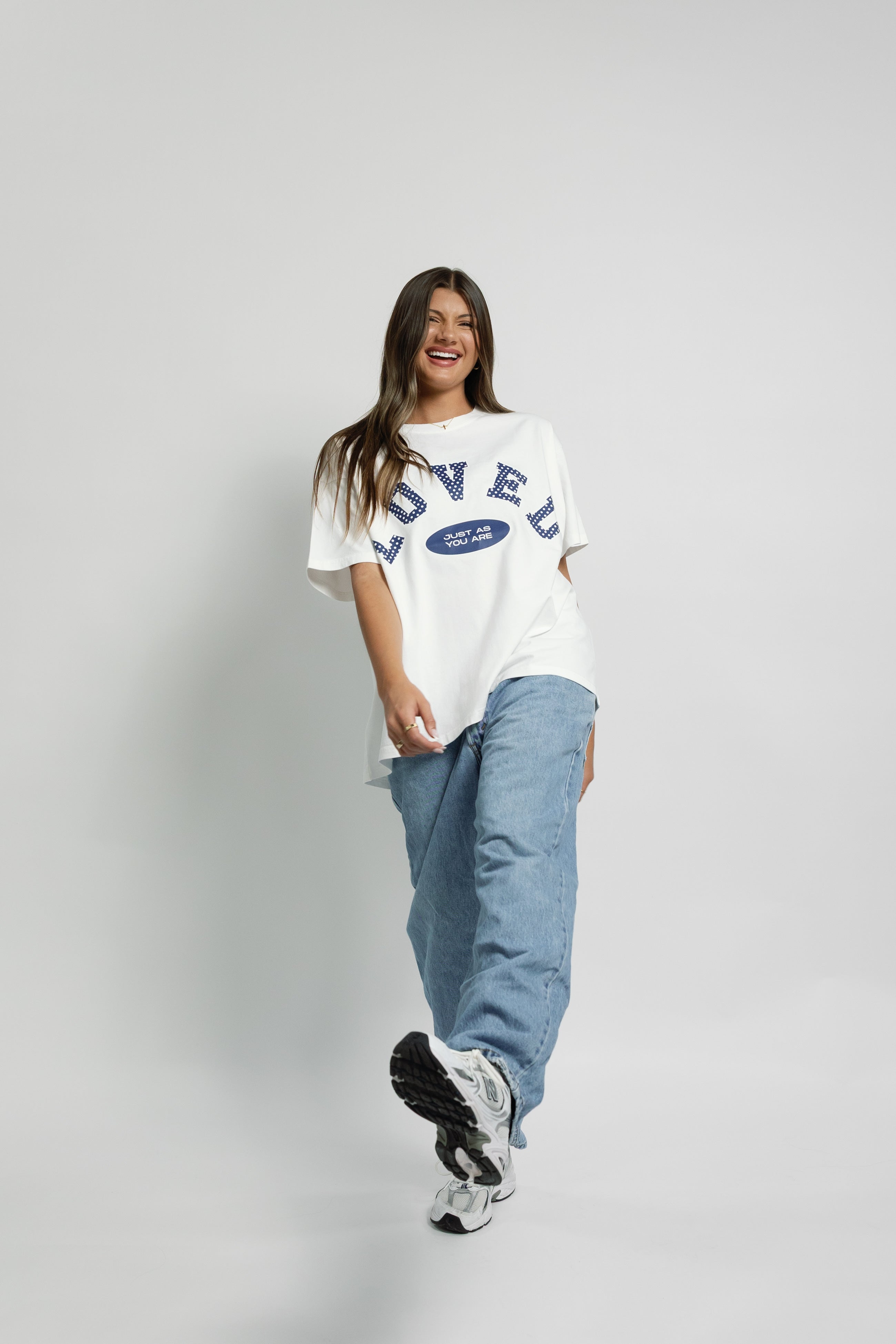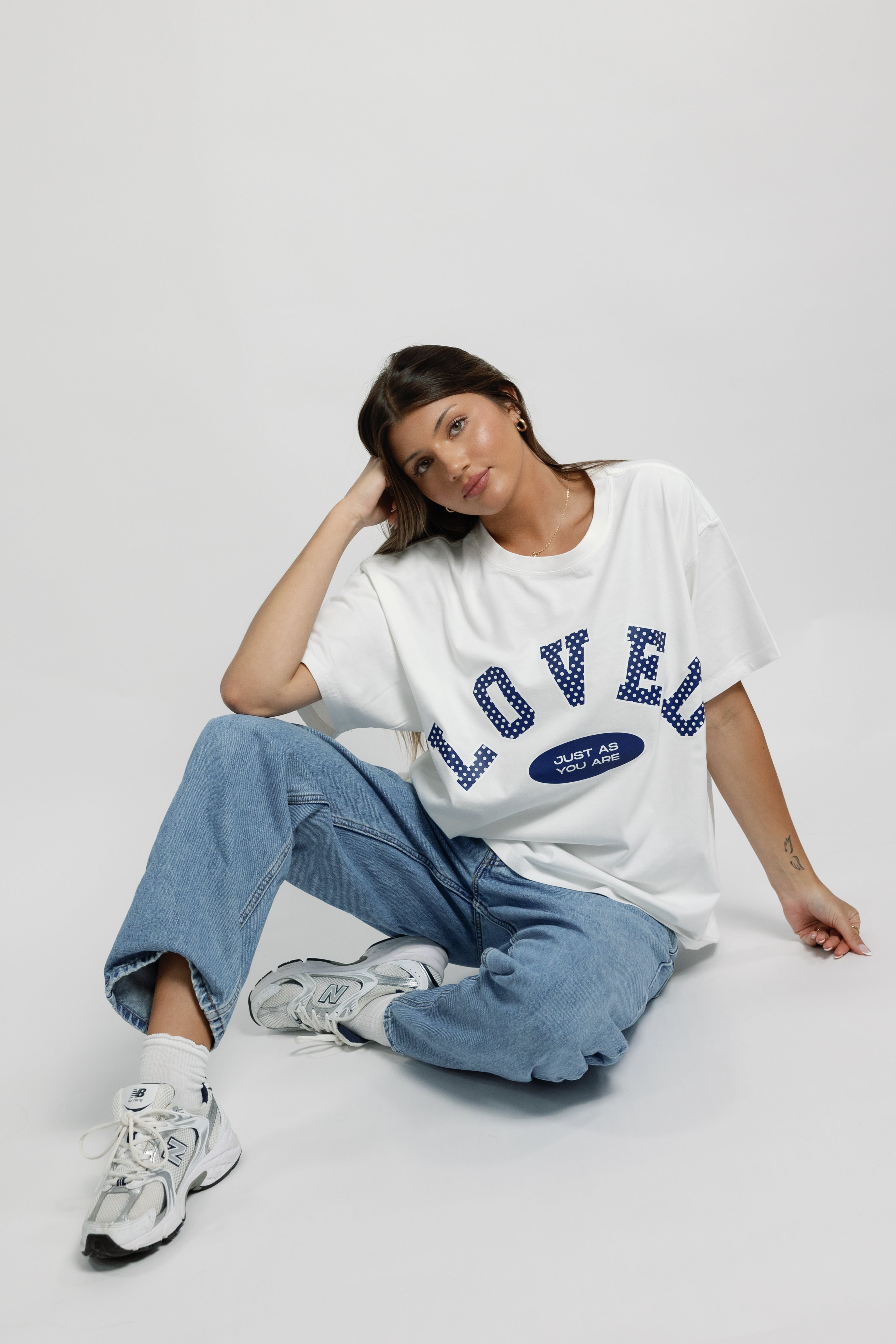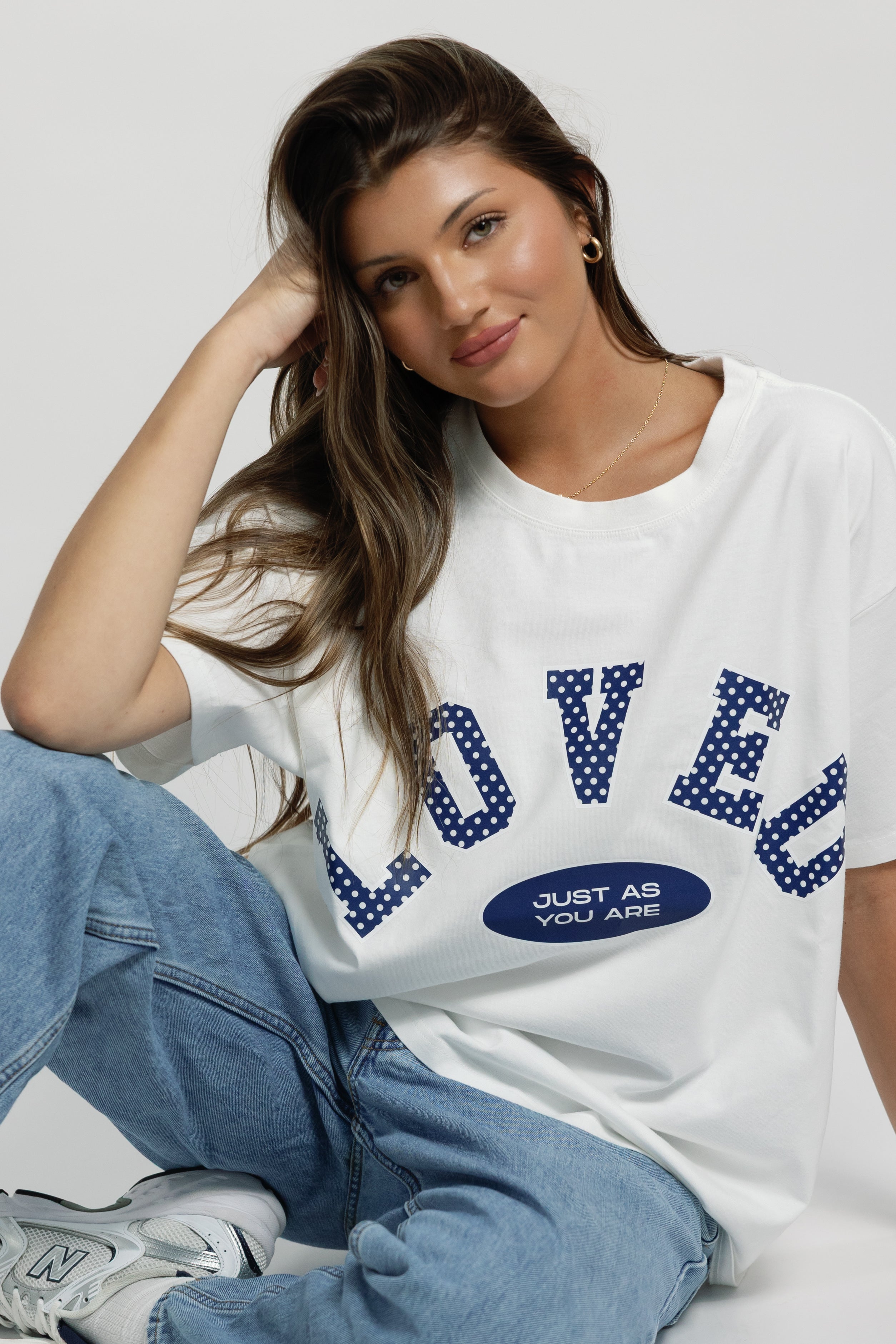 Our signature Mariposa oversized tee with the spotted LOVED design