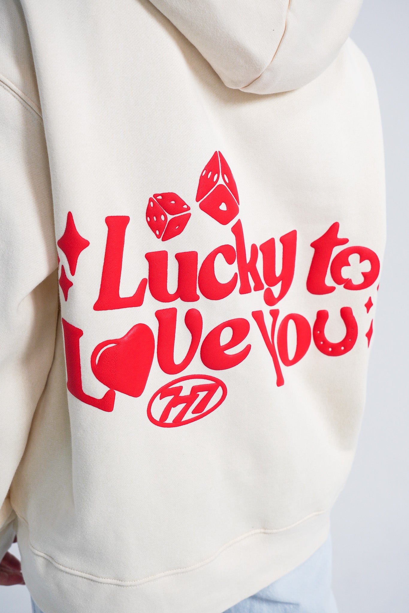 Our signature Mariposa hoodie with the Lucky to Love You design