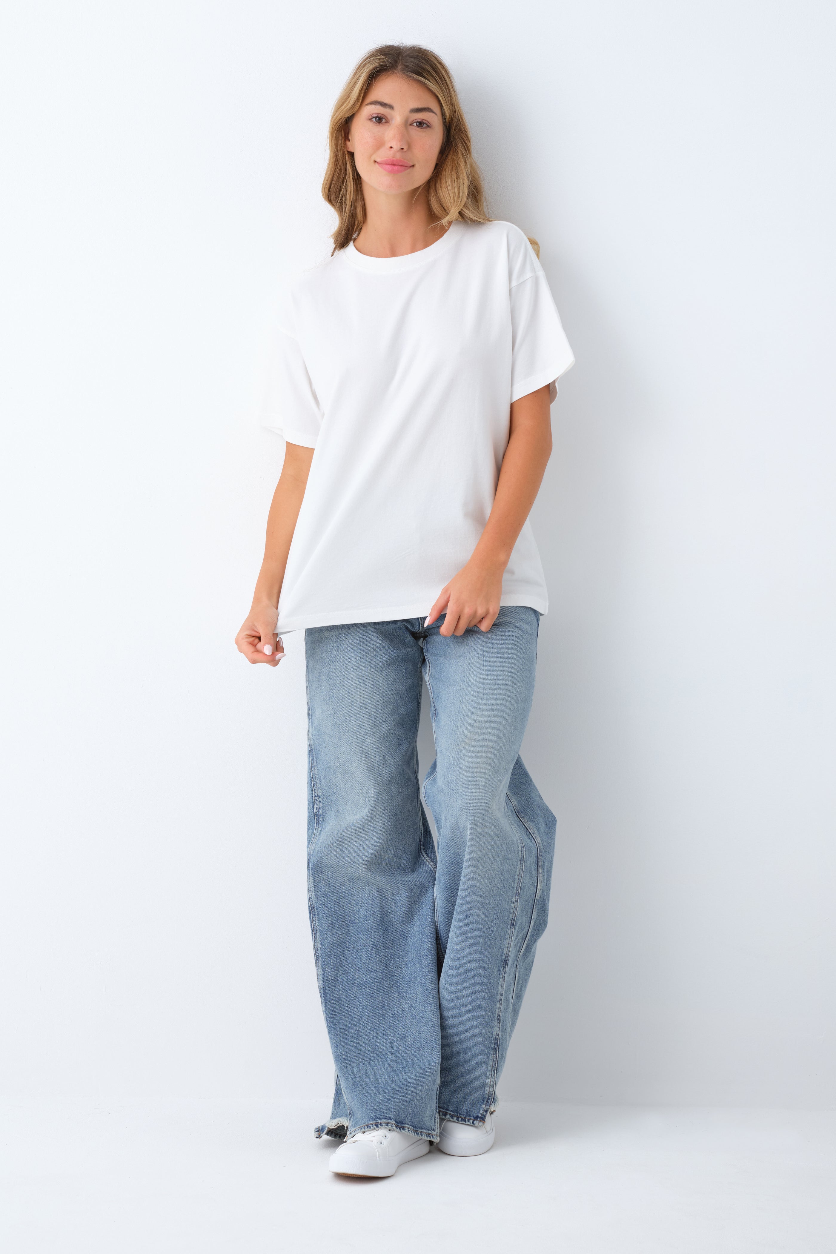 - Extra room in the body and hip area for a relaxed, oversized vibe