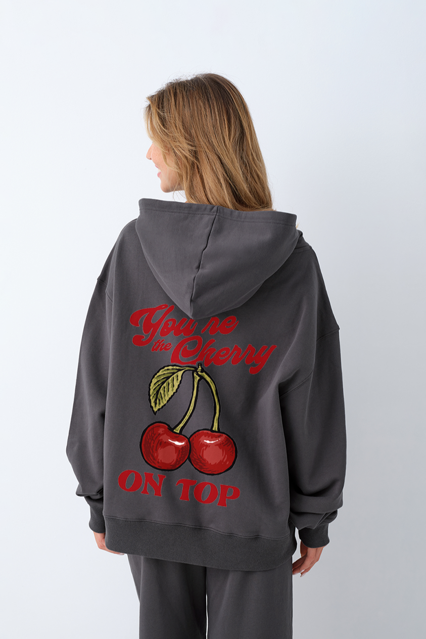 Our signature Mariposa hoodie featuring the You Are the Cherry on Top design.