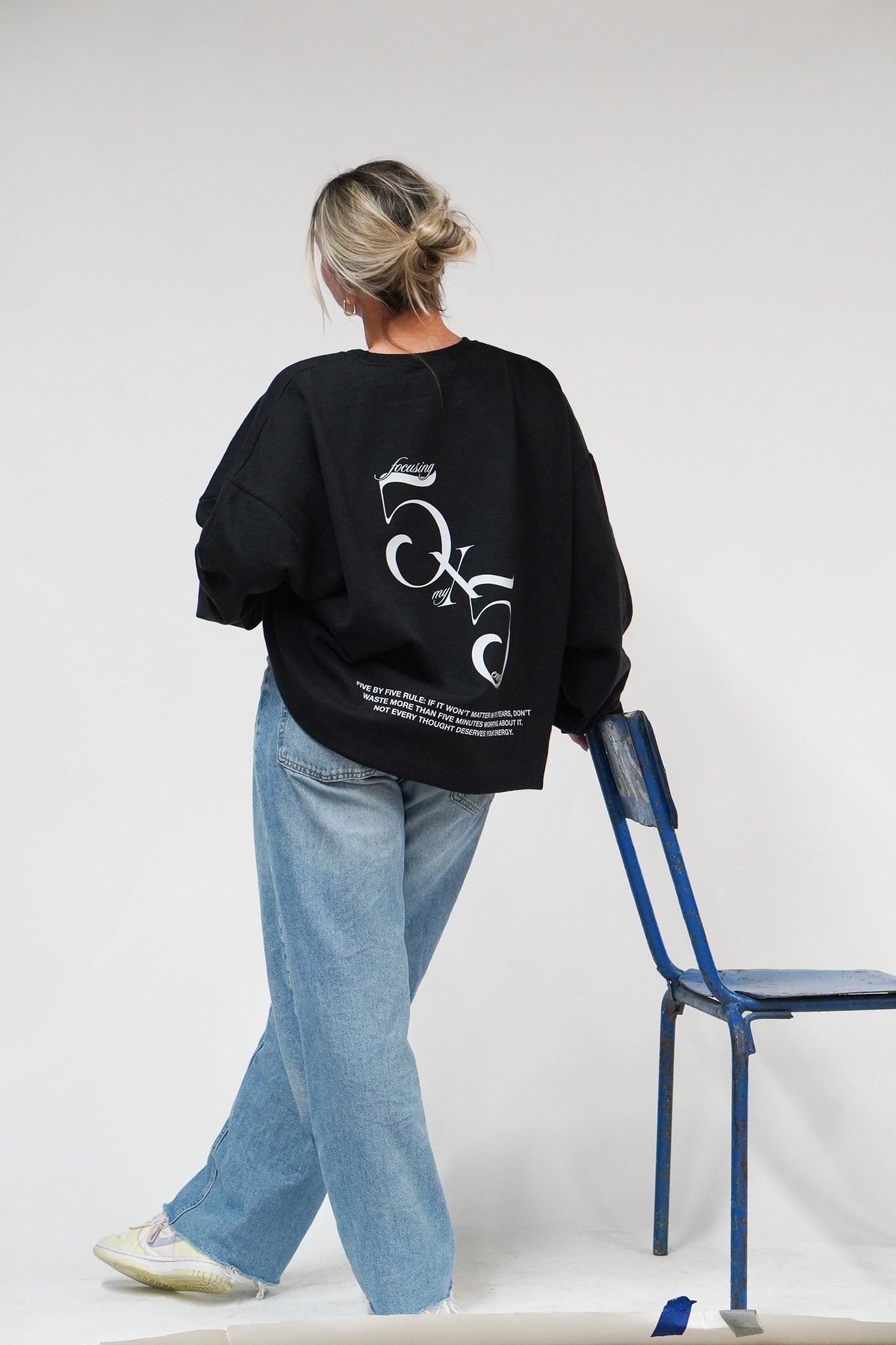 - Back print featuring 5x5 and the written Five by Five Rule: If it won’t matter in five years, don’t waste more than five minutes worrying about it