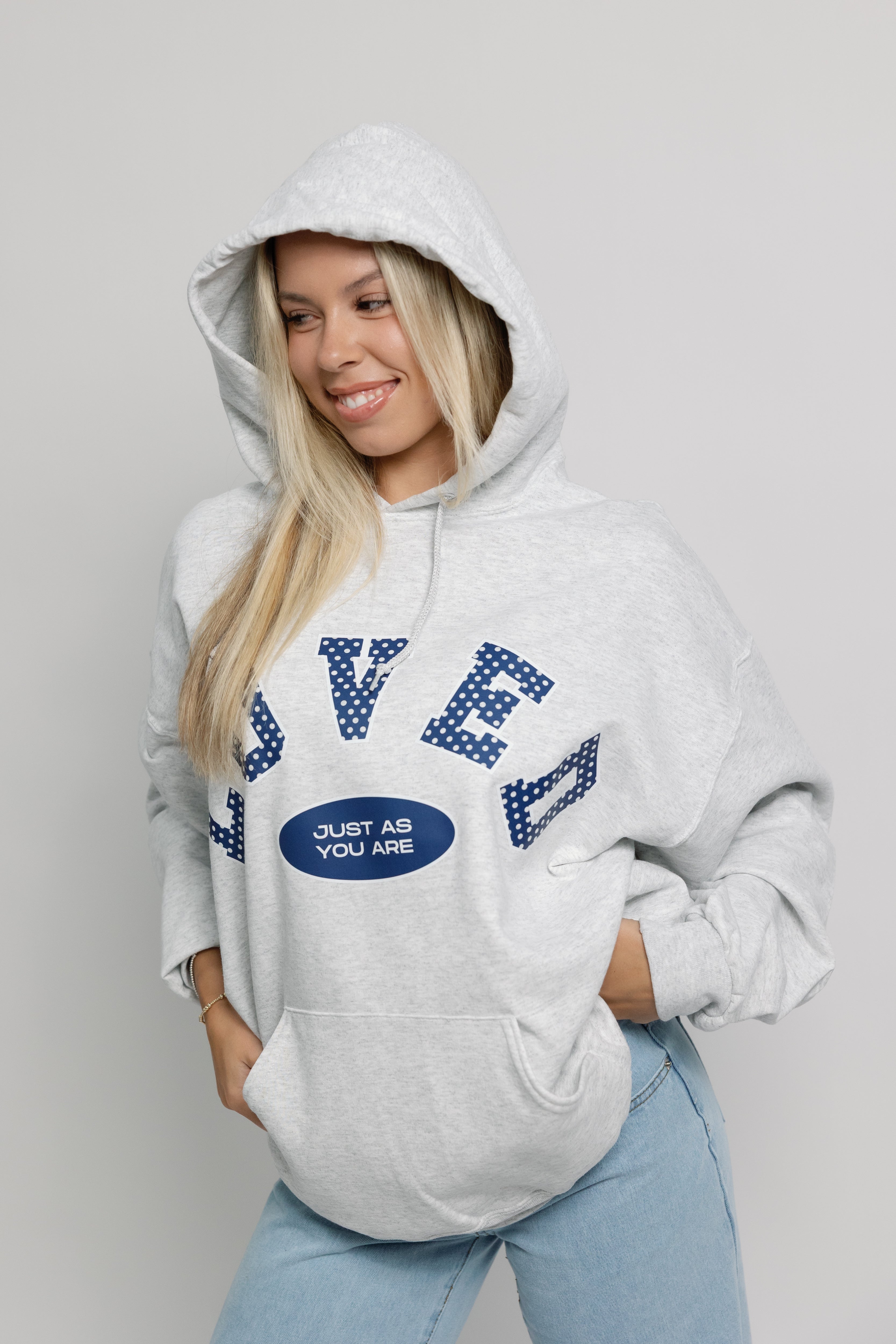 Our Origins hoodie with the spotted LOVED design