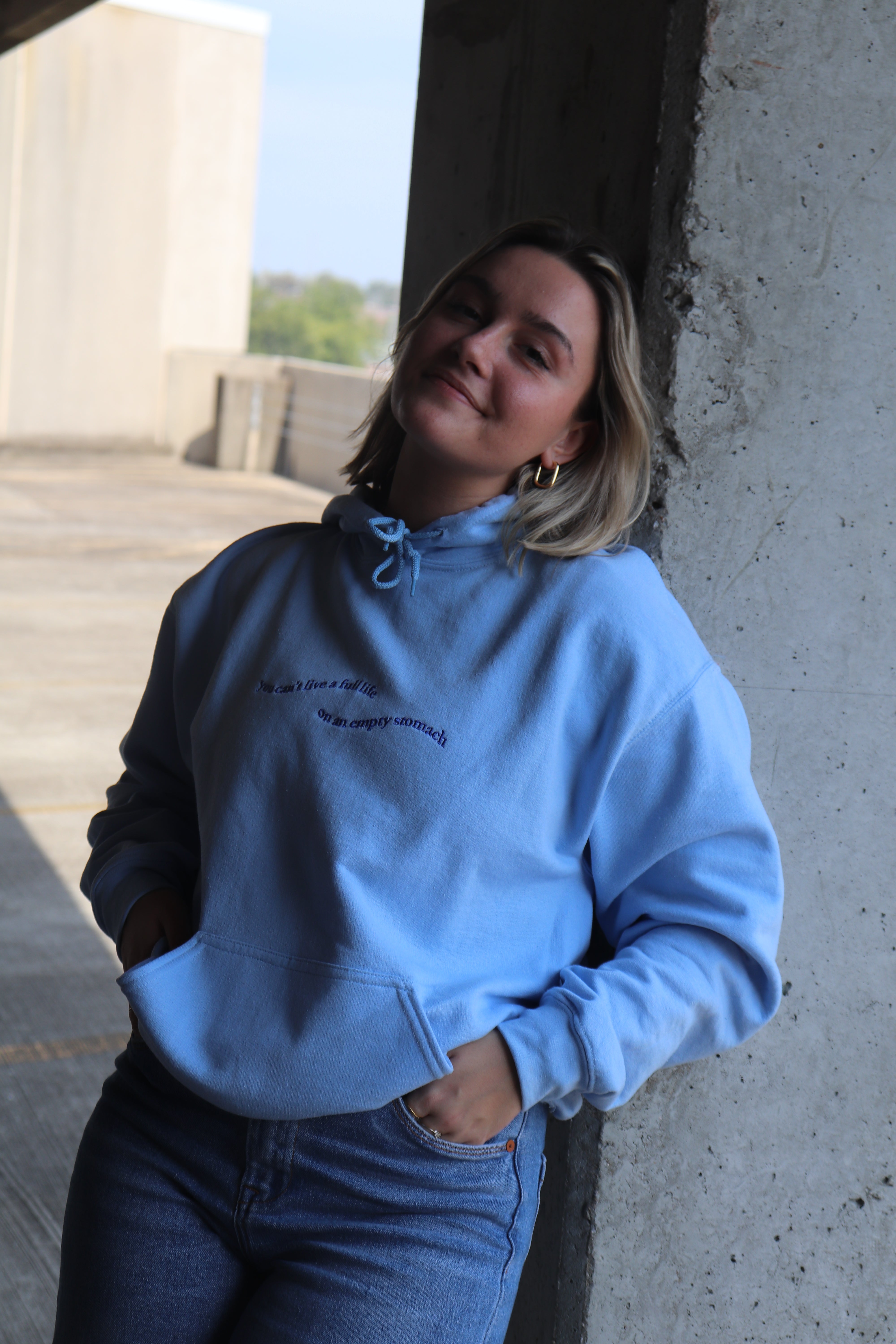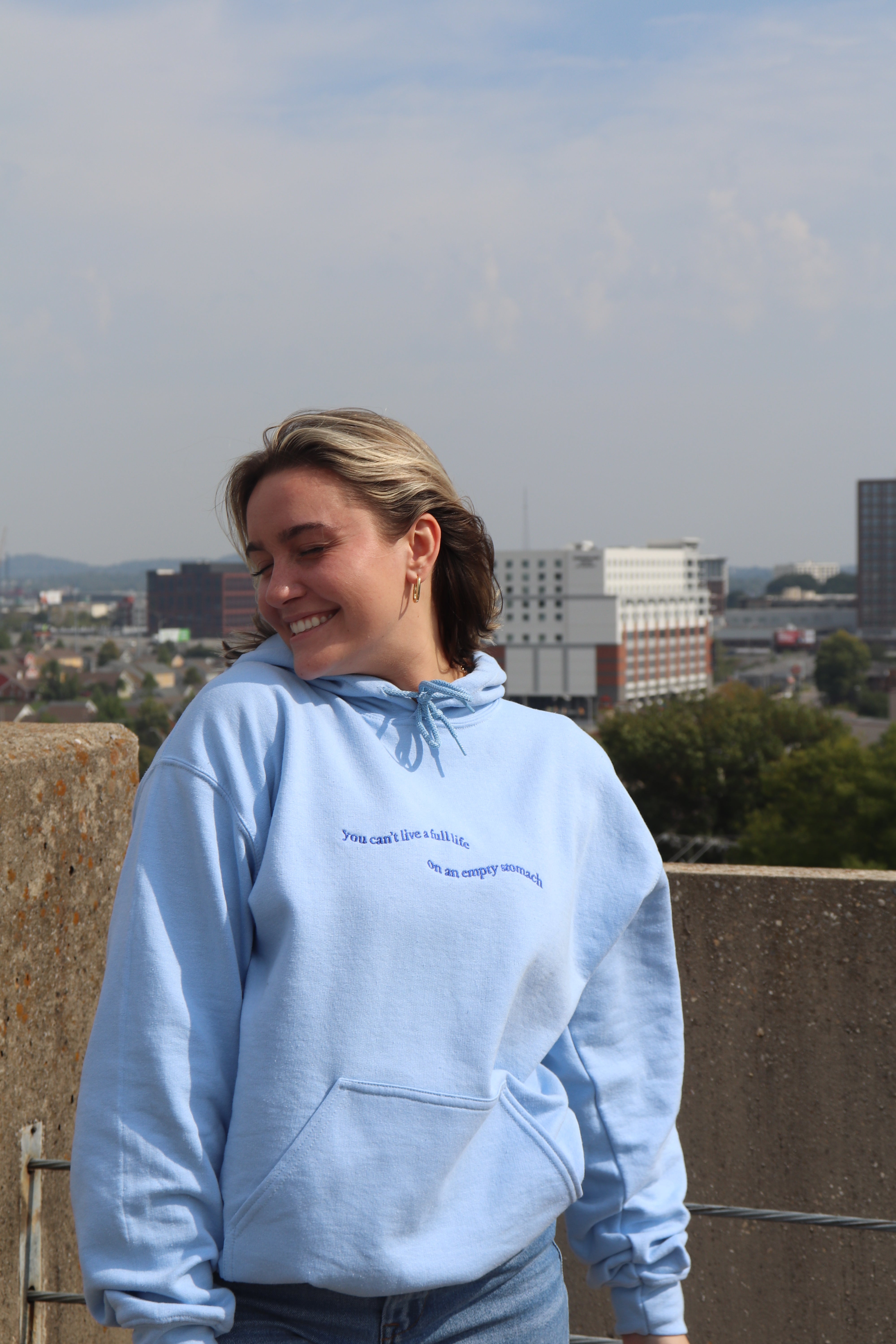 Our Origins hoodie with our You Can't Life a Full Life on an Empty Stomach design in honor of NEDA week.