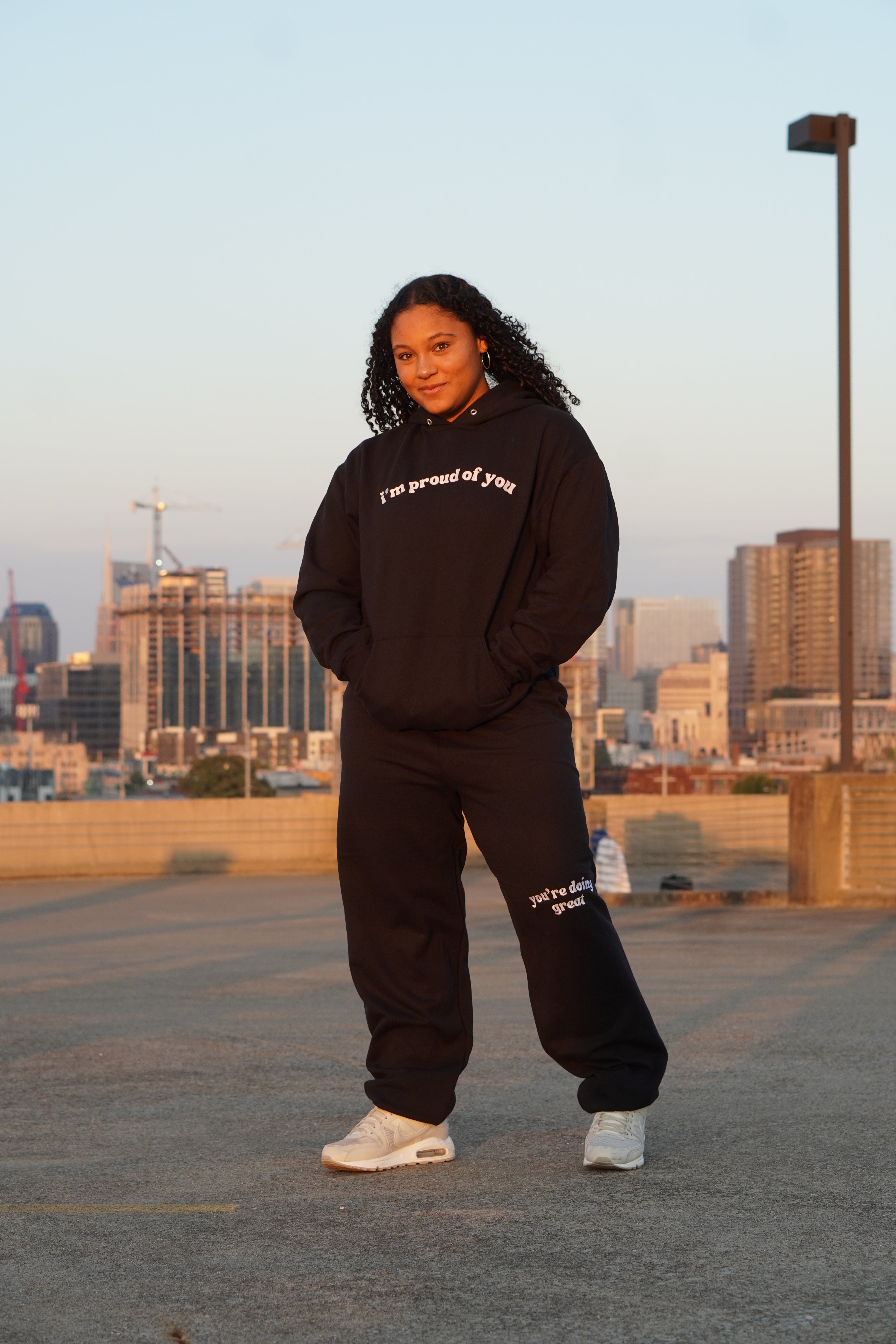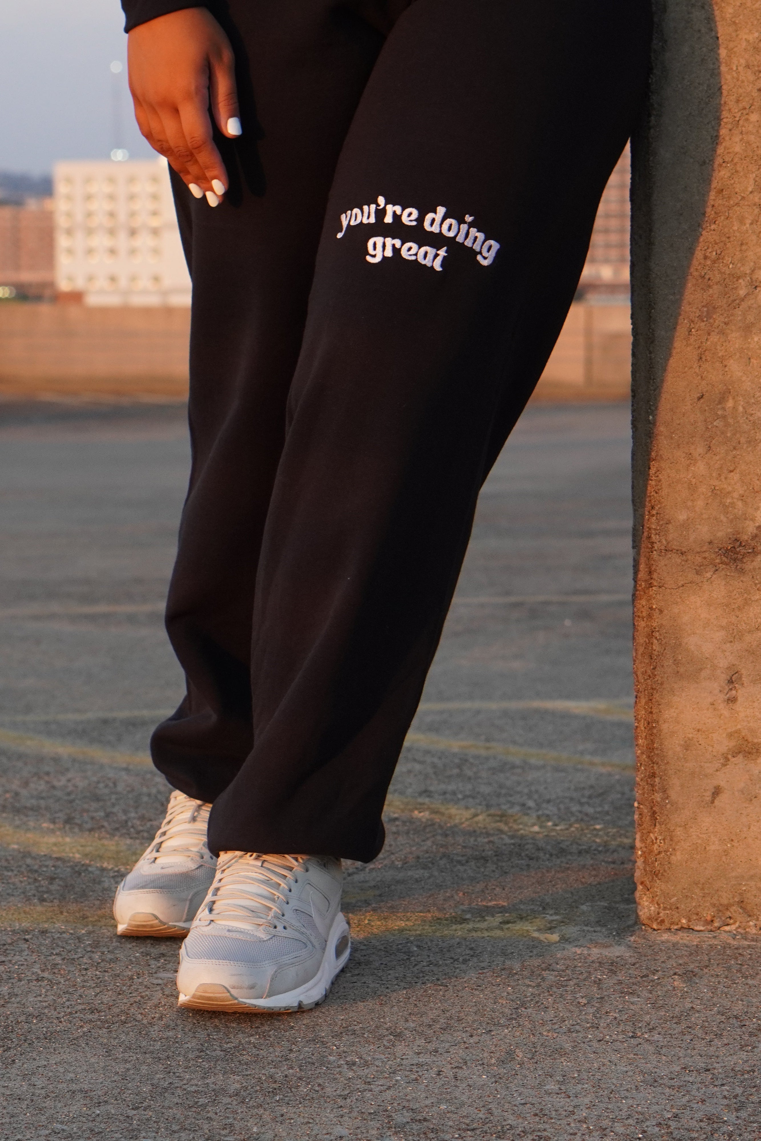 Our Origins sweatpants with the You're Doing Great design — a cozy reminder that can make someone’s day.